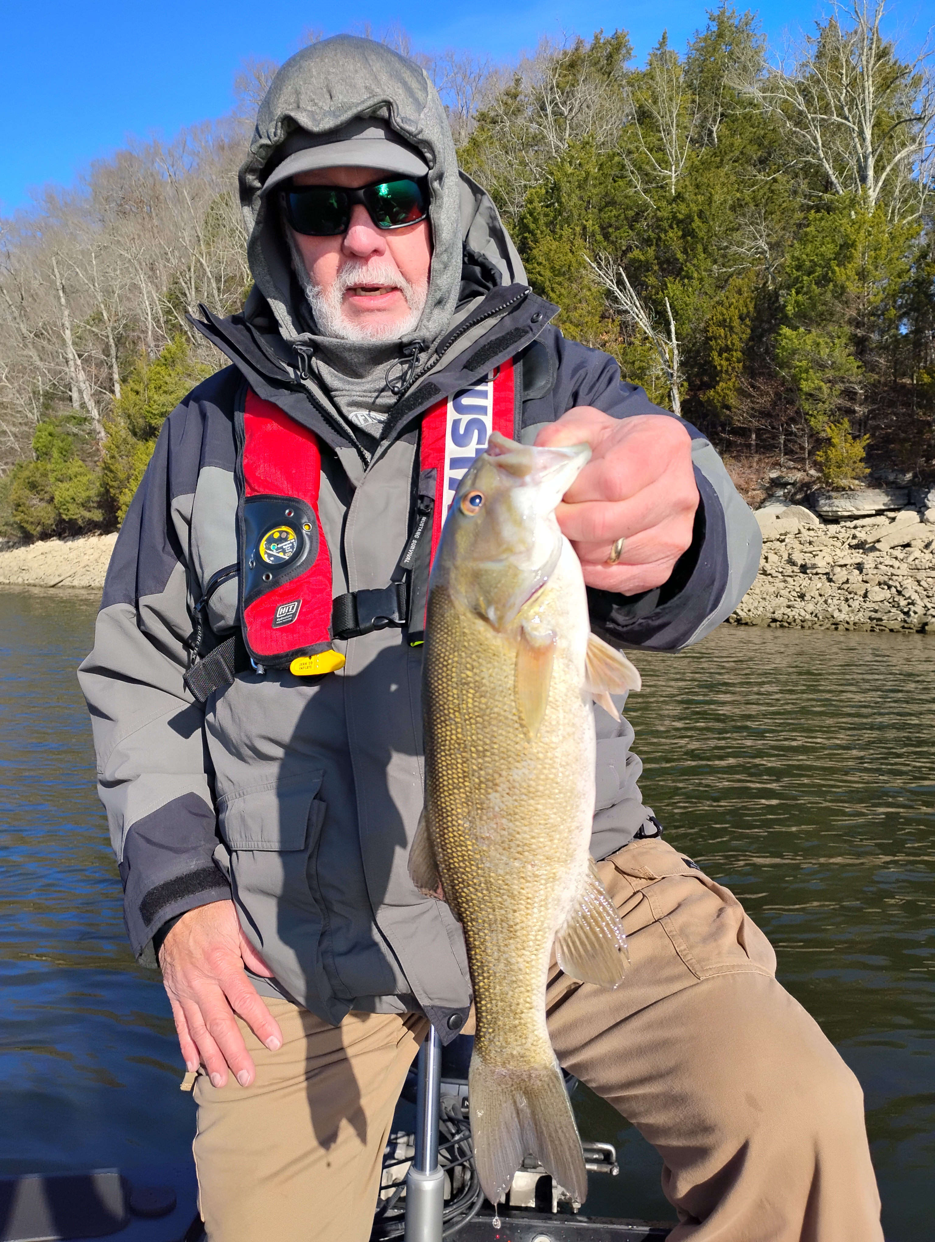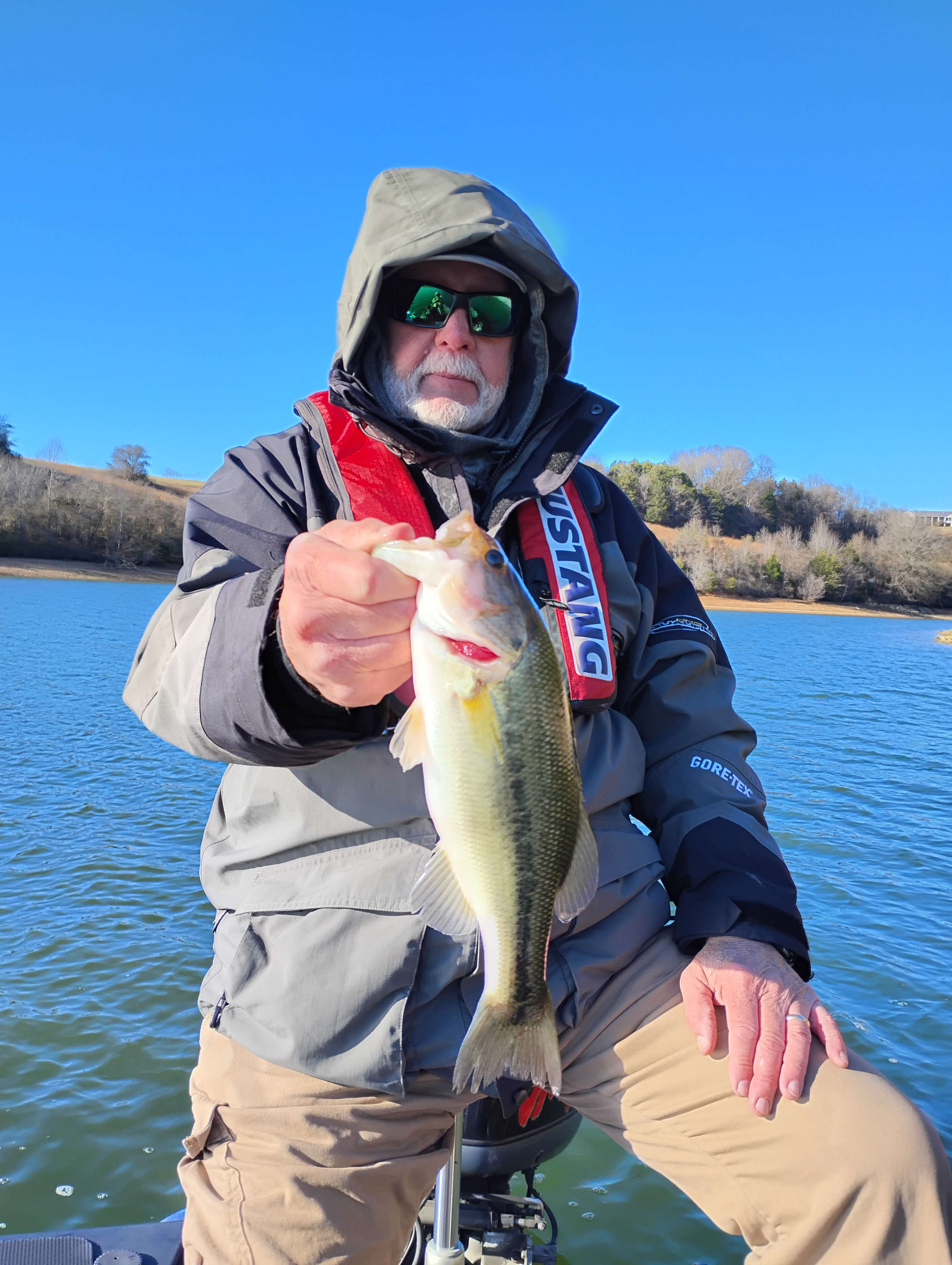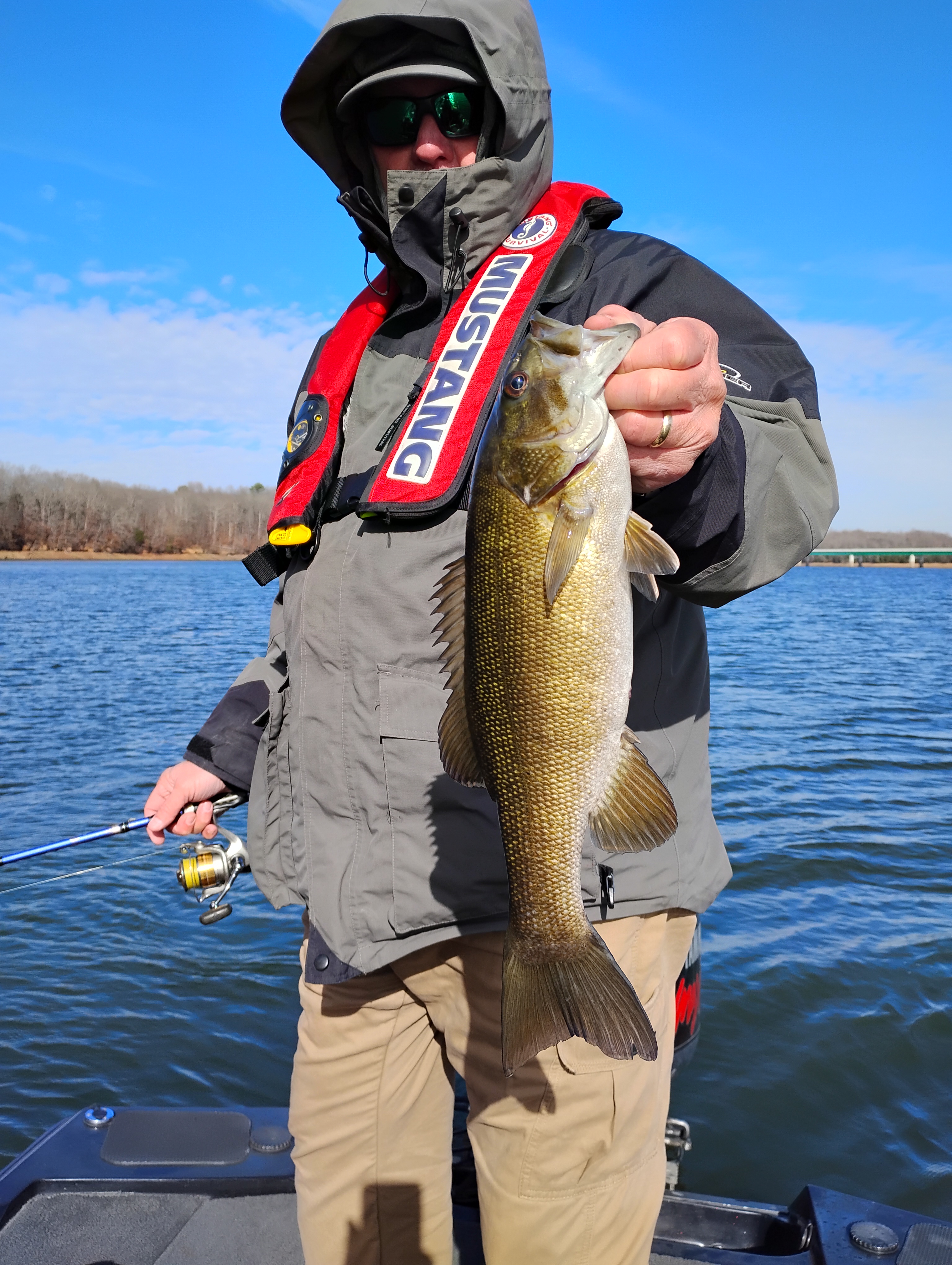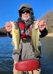 Ken and I fished Tim’s today for 6 hours. We caught and released 9 total with the ones above being our best, They hit a Rapala OG DeepTiny 7 Green Gizzard Shad www.rapala.com or a VMC Weedless Finesse Jig www.vmchooks.com and soft plastics . The OG’s are great flat sided balsa baits with a circuit board lip that runs true every time . “I THOUGHT” they would hit RED today but it didn’t happen-they liked the shad instead. Water temp when we started was 49 degrees and got up to 51 degrees before we left. No real pattern to tell you about-just keep your trolling motor down and keep chunk’n. 6lb Sufix Clear Blue Promix mono and Sufix Yellow Performance Braid with a Sufix Advance fluorocarbon leader . Check out all of our great items at Rapala.com Maybe 1 more post this week before the bas weather sit’s in. Thanks for visiting my site. Rick McFerrin