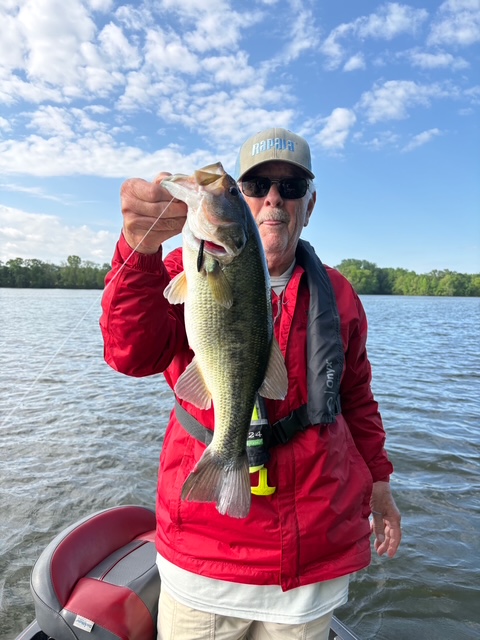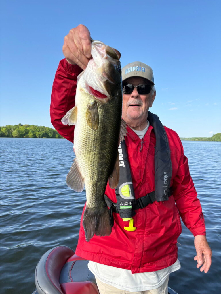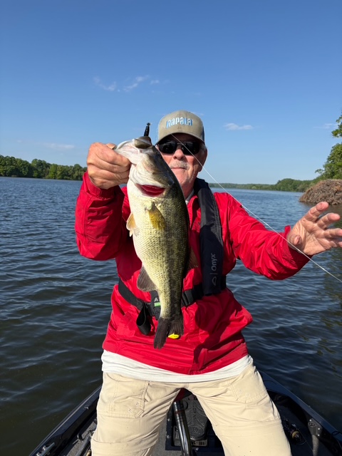 Ken and I fished 2 spots on Woods for 4 hours this morning caught and released 25 total. 6inch Crush City Janitor Candy Bug on a VMC 1/16th Rugby Jig. Suffix Braid and Fluorocarbon leader. Water temp in the mid 60’s and varying clarity depending on where we were. You can check out everying thing we used on www.rapala.com Until next time Rick